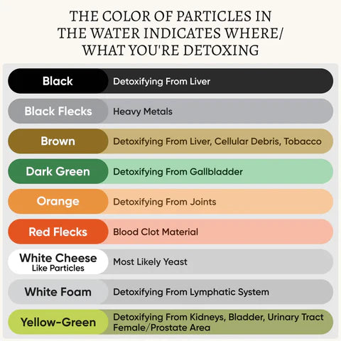 This foot detox spa was one of the best investments I have ever made (when it comes to my health). The color of my water coincided perfectly with my issues, and I have noticed improvements in other areas, as well. I highly advise that anyone with health issues purchase and try this product. My goal is to be medicine free, and this will definitely help me to get there!”